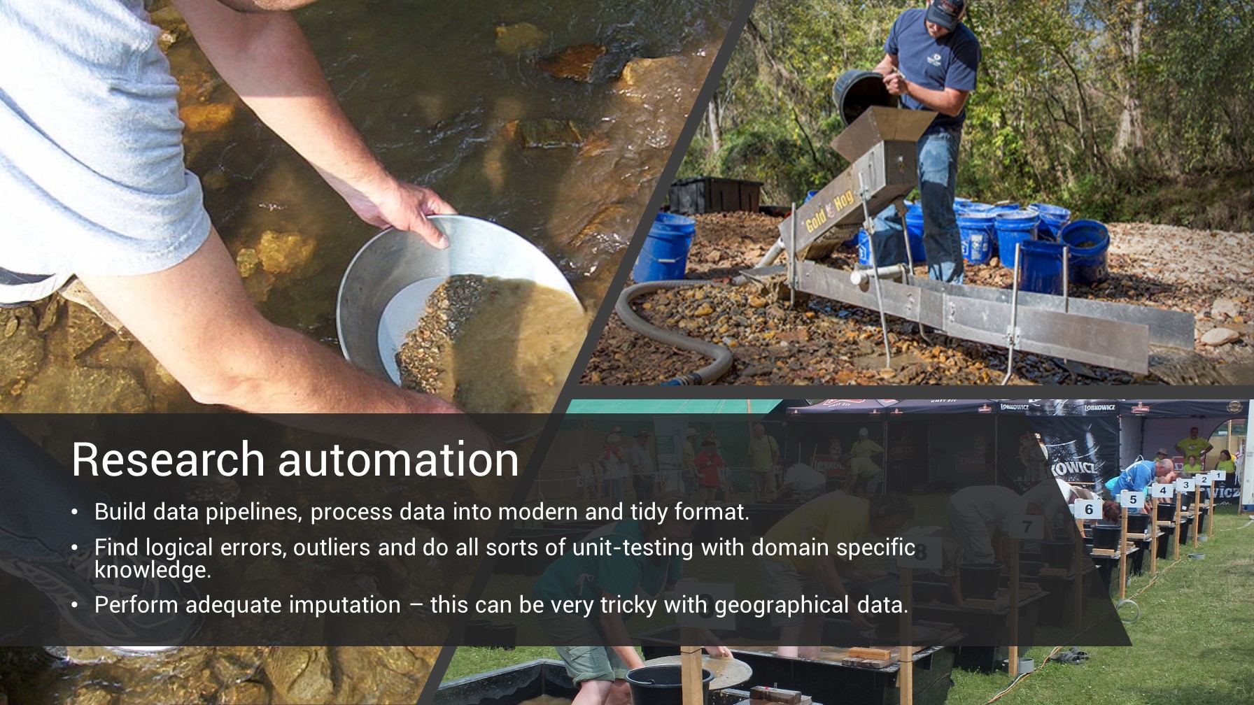 Every year, the EU announces that billions and billions of data are now “open” again, but this is not gold. At least not in the form of nicely minted gold coins, but in gold dust and nuggets found in the muddy banks of chilly rivers. There is no rush for it, because panning out its value requires a lot of hours of hard work. Our goal is to automate this work to make open data usable at scale, even in trustworthy AI solutions.